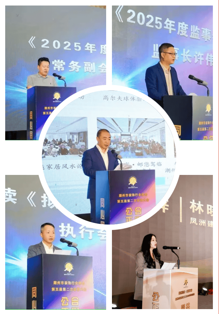 潮州市装饰行业协会是非盈利性、政府主导的权威规范性行业组织,作为连接政府、企业与市场的核心桥梁,汇聚了潮州装饰设计、建材产销、施工安装等全产业链优质企业与资深从业者,规模庞大、资源集聚,行业公信力与权威性获广泛认可,是推动潮州装饰行业规范化发展的核心力量。本次年会中,许海鹰、卢钊龙、徐伟波、张赟伟、林晓丹等协会领导出席并发表重要讲话,会议审议通过025年度工作报告、财务报告等重要决议,全体参会人员举手表决通过,为行业发展锚定方向、夯实基础。