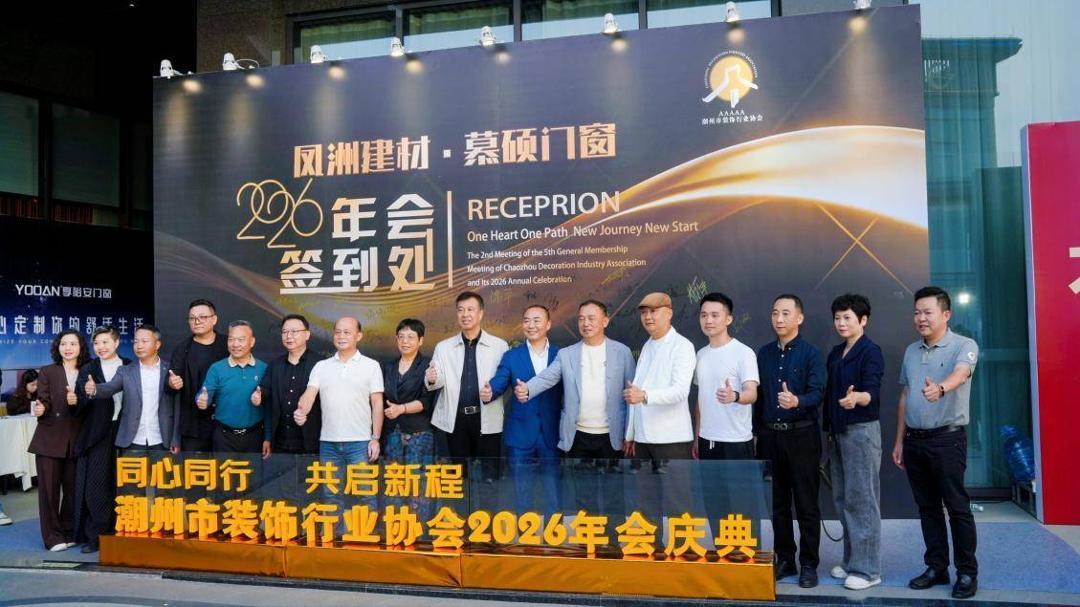 2026年3月22日,潮州市装饰行业协会2026年年会圆满落幕。慕硕门窗与凤州建材以联合冠名身份深度参与本次盛会,与行业同仁共探产业升级路径、共绘高质量发展蓝图,以智者之姿、共进之势,为潮州装饰行业注入全新活力与发展动能。