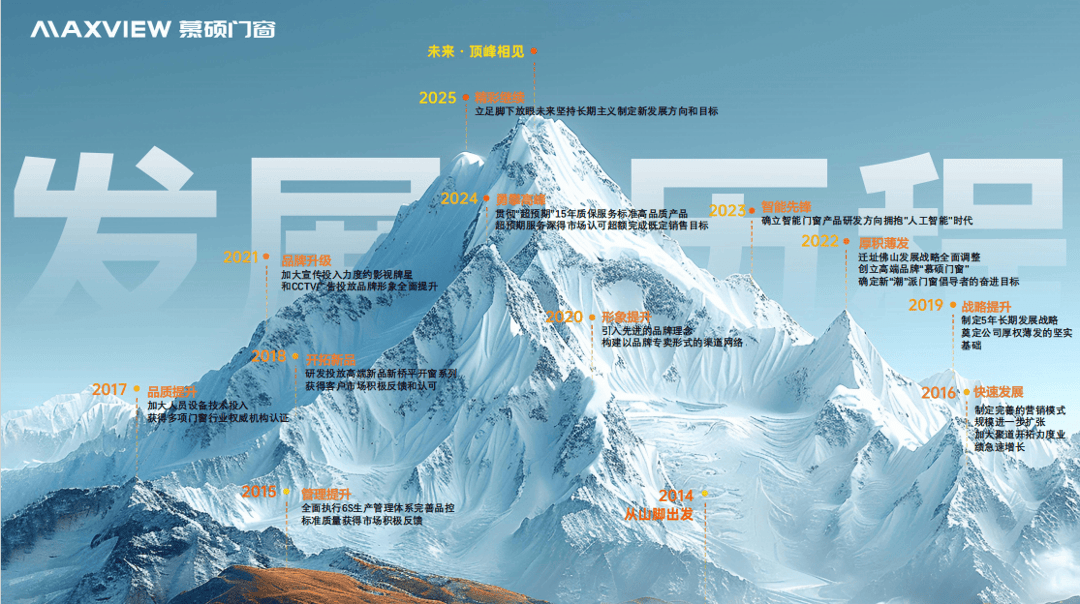 从2014年夯实基础、完善品控体系,到2016年乘势而上、规模与业绩双增长;从行业调整期的战略深耕,到2022年迁址佛山、创立高端品牌“慕硕门窗”,确立新潮派门窗倡导者定位;再到2023年贯彻15年超预期质保服务标准、以品质服务赢得市场高度认可,慕硕门窗始终摒弃短期逐利思维,将长期主义深植企业发展内核,以技术创新为根本,以产品品质为基石,一步步构建起自身核心竞争力,为长远发展筑牢根基。